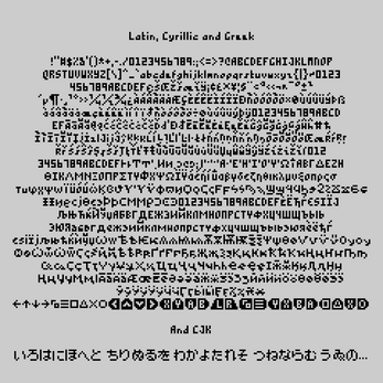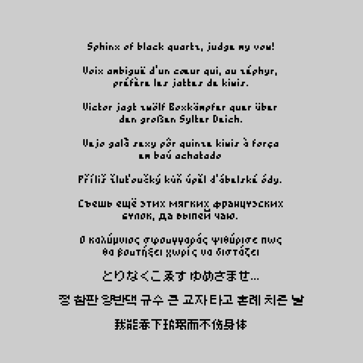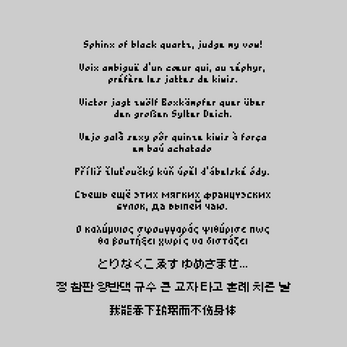 Probly8Denser is a small proportional pixel font designed for readability at low resolutions. It's restricted to 8px line height, with support for extended latin, cyrillic, greek, chinese, japanese and korean characters. You can also paste ①②③④⑤⑥⑦⑧⑨⑩⑪⑫ for controller icons.